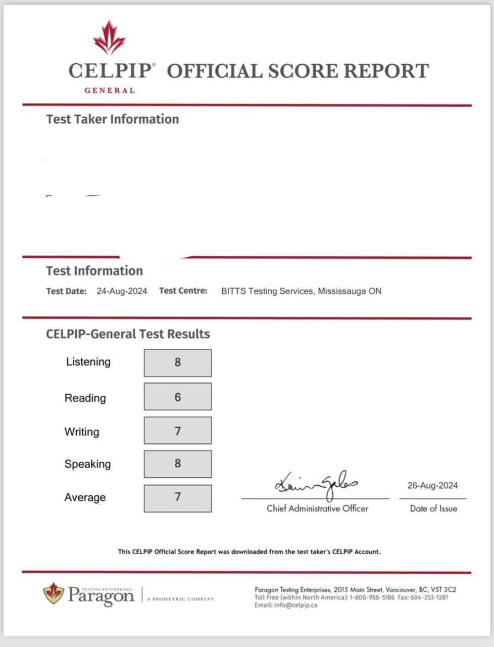 was struggling to get my required CELPIP score for migration. Thanks to Mr. Chris, my score was securely upgraded within a few days! I highly recommend their services to anyone in need of a guaranteed CELPIP boost